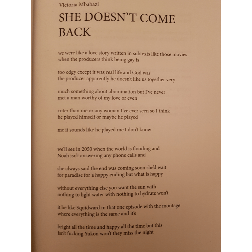 Victoria Mbabazi is a mental health major pursuing a double minor in creative writing and philosophy at University of Toronto. Her work can be found in The Puritan, CV2, Feels Zine, Bywords, untethered Magazine, and Release Any Words Stuck Inside You Volume 2. Her poetry placed second in The Hart House Review contest and her work has been shortlisted in Plenitude’s Flash Fiction contest and long-listed in Room’s Poetry contest. She’ll be doing an MFA with a concentration in poetry at NYU in the fall and is currently working on a poetry collection. @victoria_mbabazi