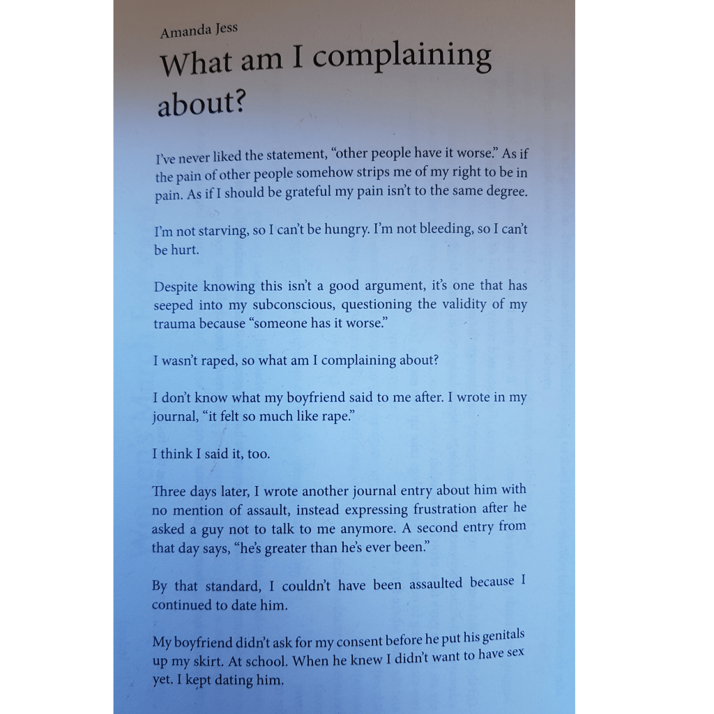Amanda Jess is a Nova Scotia-based writer who has been published in FLARE, untethered, and several newspapers throughout Nova Scotia. She has an MFA in Creative Nonfiction from the University of King’s College and a BA in Journalism from St. Thomas University. She proudly owns the label feminist, and specializes in writing that explores consent, self-love, and relationships. @jessamand