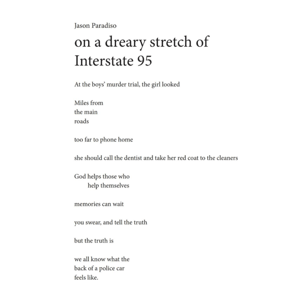 Jason Paradiso is an editor/poet/writer/artist. He continues to work on his poetry project, Cut Lines & Pulled Quotes, created with rearranged clippings from dated magazines. They have appeared in a variety of publications. @jason.paradiso