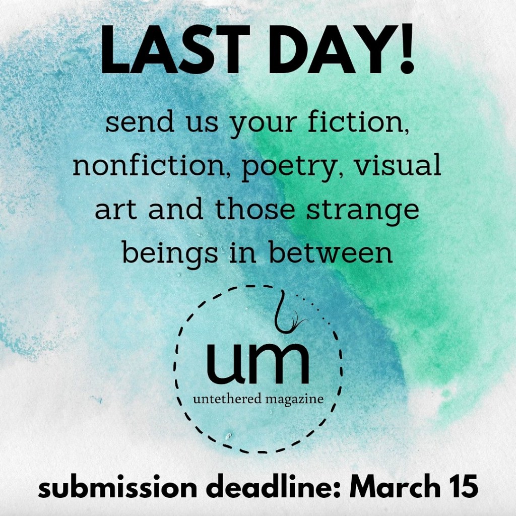 Today is the last day to submit your poetry, fiction, nonfiction, visual art and, of course, those strange beings in between for consideration for inclusion in our upcoming issue, vol.6.1!