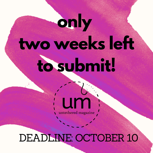 Time is running out! Only two weeks left to submit your best poetry and visual art for consideration for our 12th issue! We can’t wait to read your work.