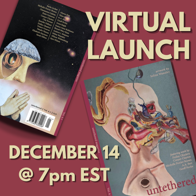 Volume 6.1 Virtual Launch Mark your calendars! Join us Tuesday, December 14 at 7pm EST on ZOOM to celebrate the launch of our brand new issue, volume 6.1! Check back soon for information on how to register, the fantastic lineup of readers, raffle prizes, and more!Share this: Click to share on X (Opens in new window) X Click to share on Facebook (Opens in new window) Facebook Like Loading...
