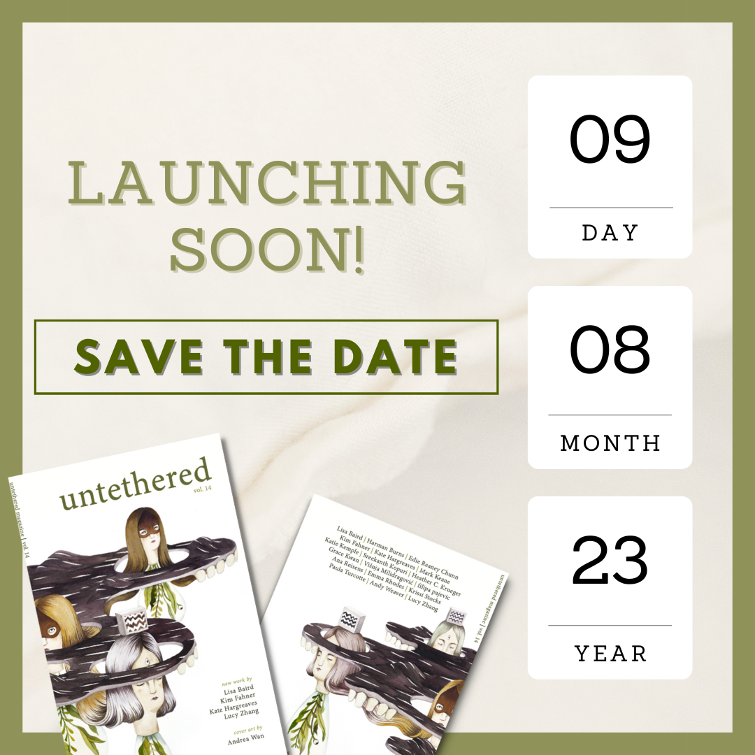 Mark your calendars untethered readers! Join us Wednesday, August 9th @ 7:00pm EST on Zoom to celebrate the launch of our new issue, Vol.14!