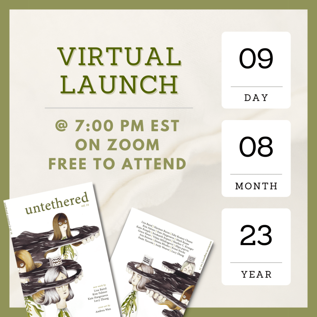 Our brand new issue, Vol. 14, will be launched virtually on Zoom (registration link here) on Wednesday, August 9th @ 7:00 PM EST. RSVP to the event on Facebook to stay up to date!
