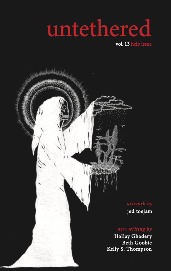 Over the past eight years, untethered’s tiny team has lovingly laboured over thirteen print issues that featured an eclectic mix of quality prose, poetry, visual art and those strange beings in- between, on a next-to-nothing budget provided to us by the sheer generosity of our readers.