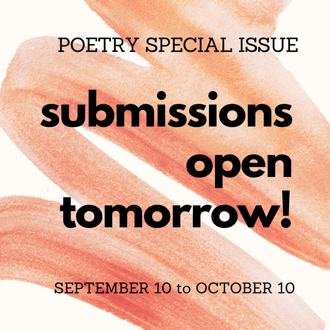 It’s that time again! For issue 12, we’re mixing things up a bit! We’re super excited to announce that our next issue will be a special POETRY issue! Our current submission period welcomes submissions of poetry and visual art, or pieces that blend the two mediums!