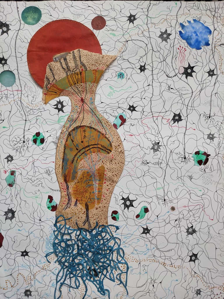 every appointment was a prayer the healing came / quick biweekly appointments in the Danforth from where I lay / on the bed it was hard / to say each time where this doctor’s hands had gone / to uncharted waters below the belly he told me loving was learning / how to float far from the shallows pelvis pitched above the water- / line I learned to float the way a marionette learns to submit to its / god I thought there would be an ease to loving with the body / laid flat the lips sliding open at the first consultation / doctor teaches me the body is a lung / some places still need to breathe the pelvis / hung midair the sting of strings spreading / the body halved at the groin the falling / and rising of the chest at his command / what is this body if the cunt can’t keep / me suspended she’s got one hand on my stomach one / at the pubic bone legs bare this doctor feels / around finds the tension at the slit says it’s about time / we give these muscles a name / to let go of the hand that’s got you strung up learn to breathe back to grounding