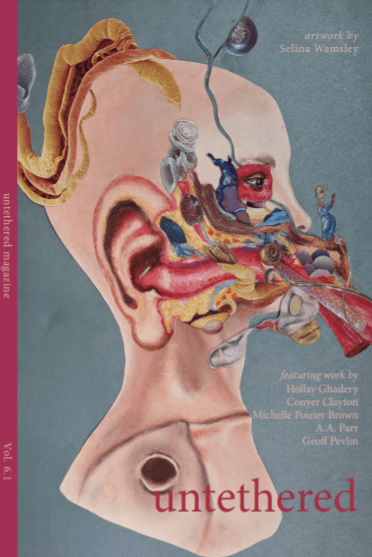 This issue includes new work by: Sacha Archer, Michelle Poirier Brown, Charmaine Cadeau, Katie Cameron, Conyer Clayton, Clay Everest, Jennifer Falkner, Hollay Ghadery, Tolmie Greaves, natalie hanna, Elizabeth Harrison, Sarah Hilton, Alyson Hoy, Hana Mason, A. A. Parr, Geoff Pevlin, Anna Ralph, Jessica Anne Robinson, Sinead Mary Ryan, Andrew J. Simpson, Allison Whittenberg, and Sara Wilson.